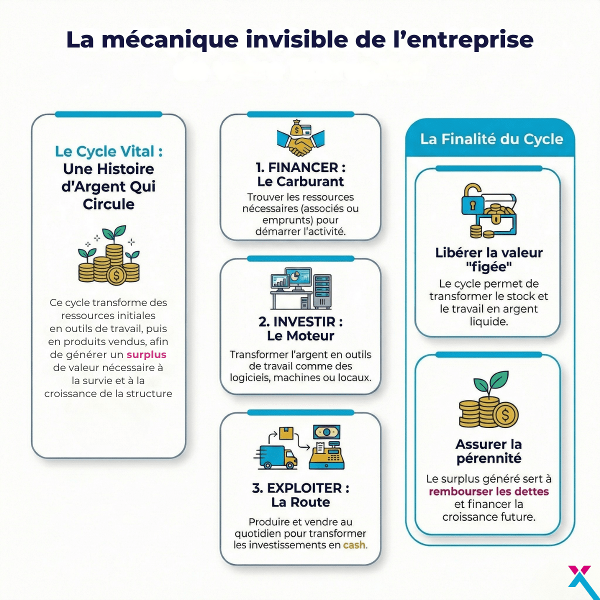 👉 expliquer, sans jargon, comment l’argent circule réellement dans une entreprise